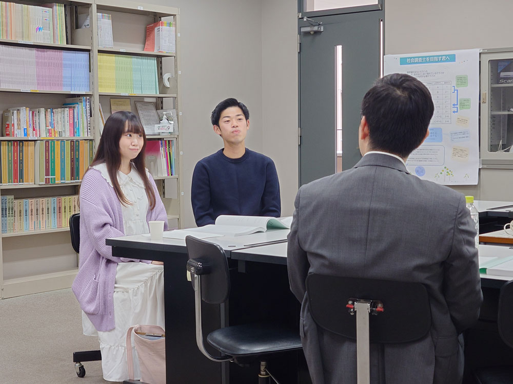 さらに、資格取得を目指す学生の学習拠点として「社会調査実習室」を整備し、職員が本申請やキャンディデイト申請等の事務手続きをサポートする体制も整っています。直近の2025年度は、30名が社会調査実習の単位を修得し、全員が資格取得に向けて学びを進めています。